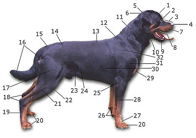 Souhrn veškerých anatomických znaků tvoří exteriér psa. Významným znakem je výška: