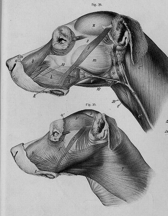 Co se týče hlavy psa, má velice dobře vyvinuty mimické svaly, které umožňují širokou obličejovou mimiku. Mezi tyto svaly patří:
